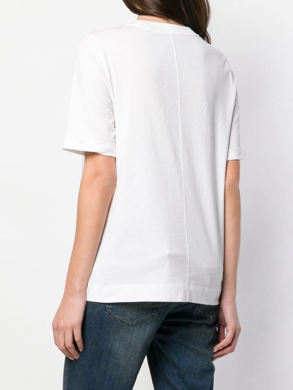 White cotton lip print T-shirt from Luisa Cerano featuring a round neck, short sleeves, turn up cuffs and a straight hem.