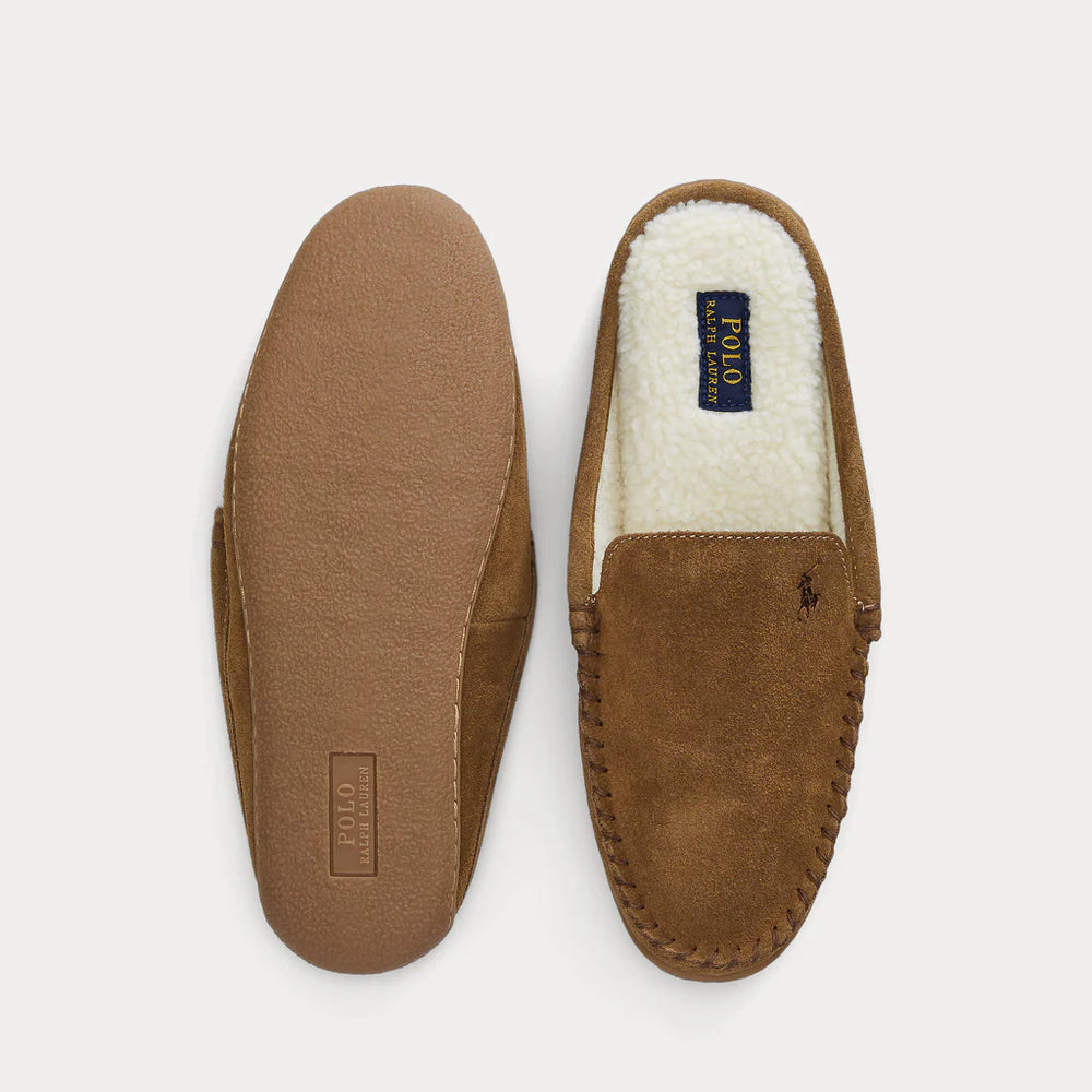 Updated with a scuff silhouette, this version of our Brenan slipper features a faux-shearling lining for premium comfort. The suede upper is finished with hand-stitching and the signature embroidered Pony.