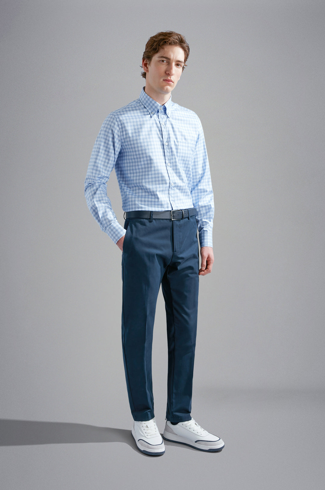 Versatile, stylish and lightweight: these chinos are an essential for endless looks. Crafted from premium-quality stretch cotton, they mould seamlessly to your every movement whilst keeping their shape wear after wear. Their refined, modern design is distinguished by a straight-leg silhouette that tapers in lightly towards the ankle, elevated with pressed creases and handy pockets.