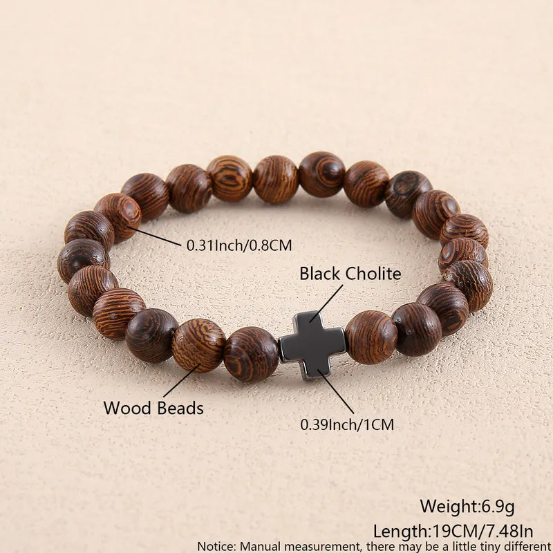 Never Needy Cross Natural Stone Bracelet | Wood Grain