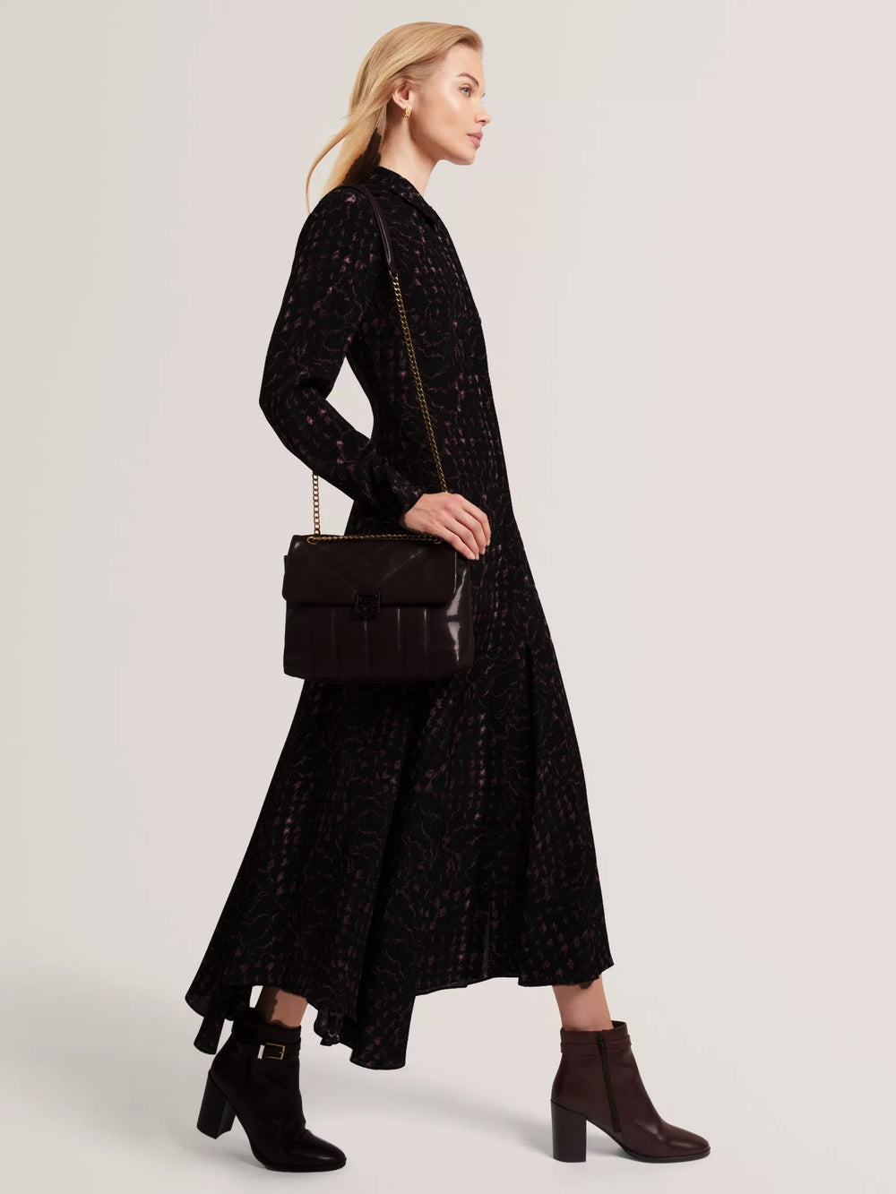Ted Baker Anileah TB Script Detail Leather Padded Shoulder Bag | Black