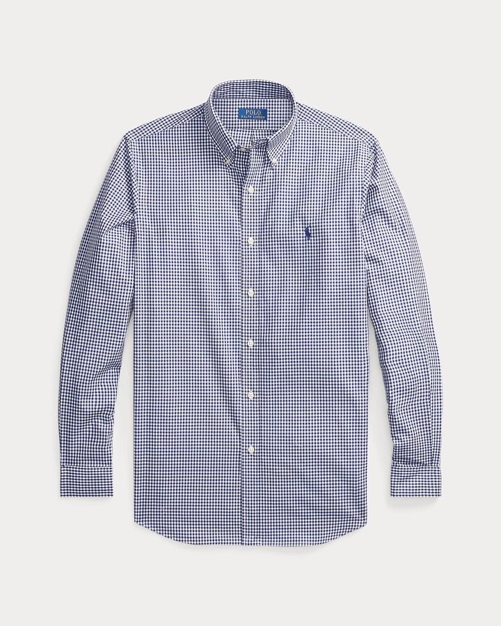 Button-down point collar. Buttoned placket. Long sleeves with buttoned barrel cuffs.