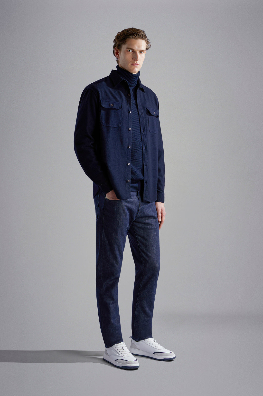 Paul & shark reinterprets timeless tailoring with a fresh, contemporary twist. These chinos are crafted from our innovative “Denim no Denim”, specially engineered to retain its colour so as to minimise water consumption during the production cycle. Styled with classic five-pocket detailing and a straight leg that tapers in lightly towards the ankle.