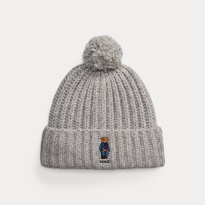 Combining a rib-knit construction with a playful pom-pom, this beanie hat showcases our cuddly Polo Bear sporting a signature Ralph Lauren outfit.
