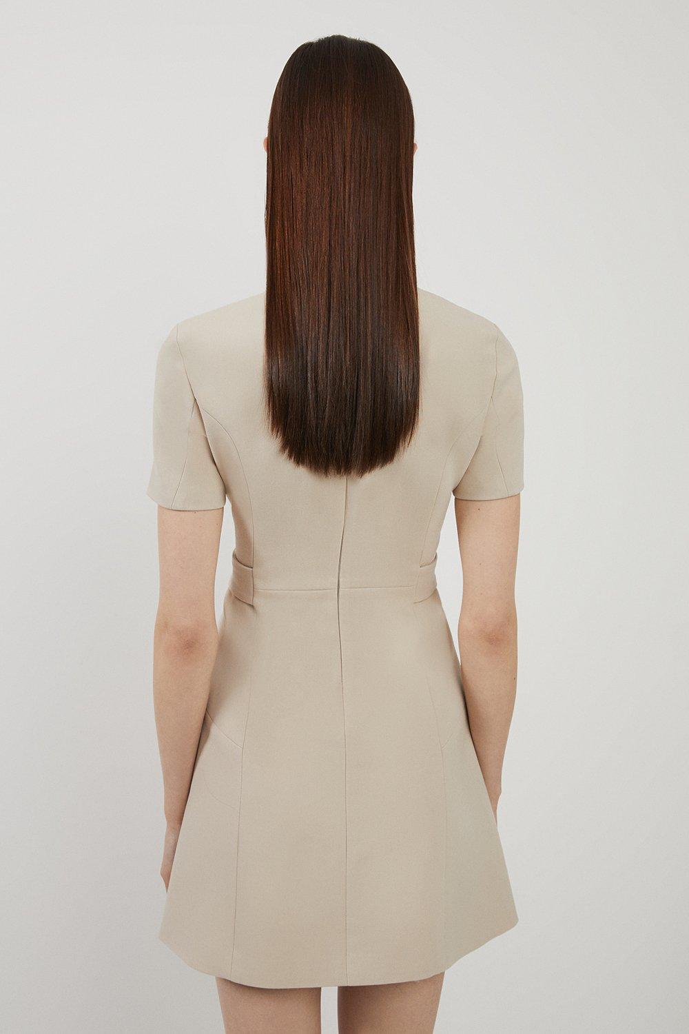 Karen Millen Compact Stretch Essential Waist Tab Detail Tailored Mini Dress | Beige
