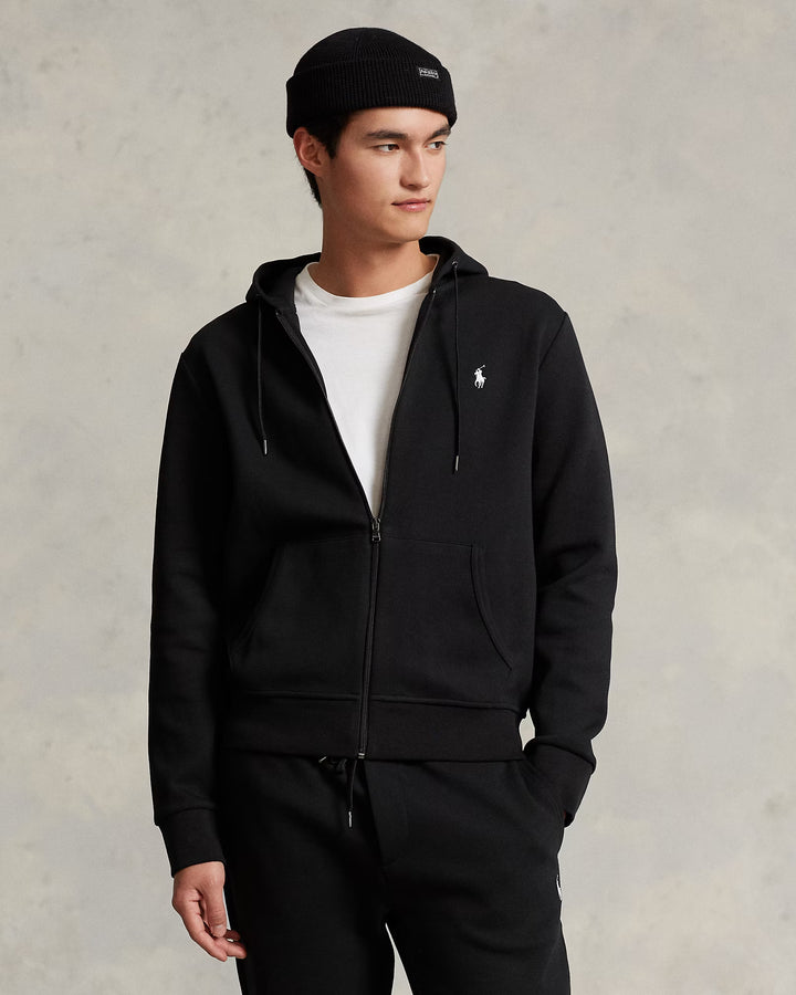 Ralph Lauren Double-Knit Full-Zip Hoodie | Black