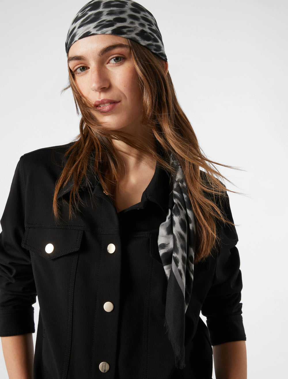 Modal stole printed with signature collection patterns. The lightweight, flowing model is embellished with a frame border and small fringes on all four sides. Size: 180 x 100 cm. Easy to combine with plain colours, to give a twist to the look.