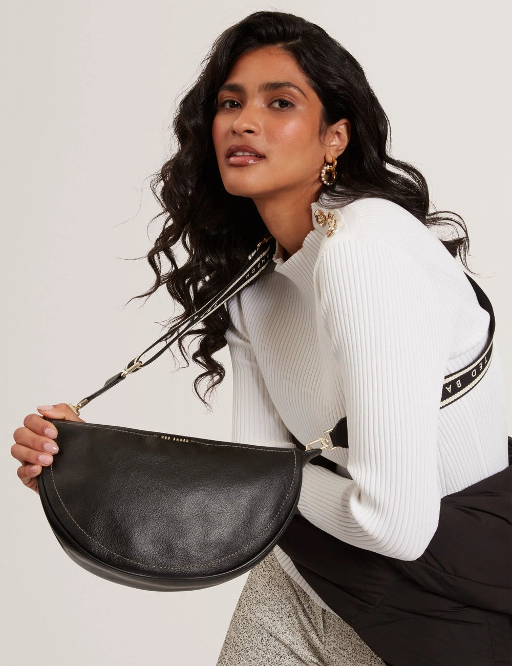 Ted Baker Webbing Strap Leather Sling Crossbody Bag | Black