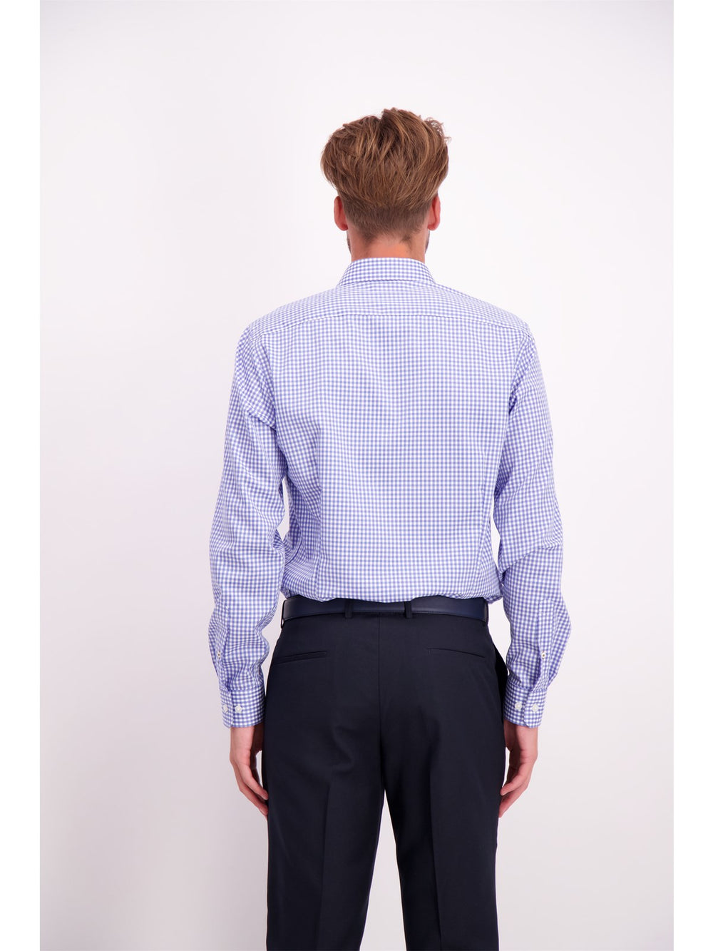 Classic shirt with plain collar and a single button with contrasting view on the cuffs. The shirt is made of 100% cotton and is surface-treated so that it is curly.