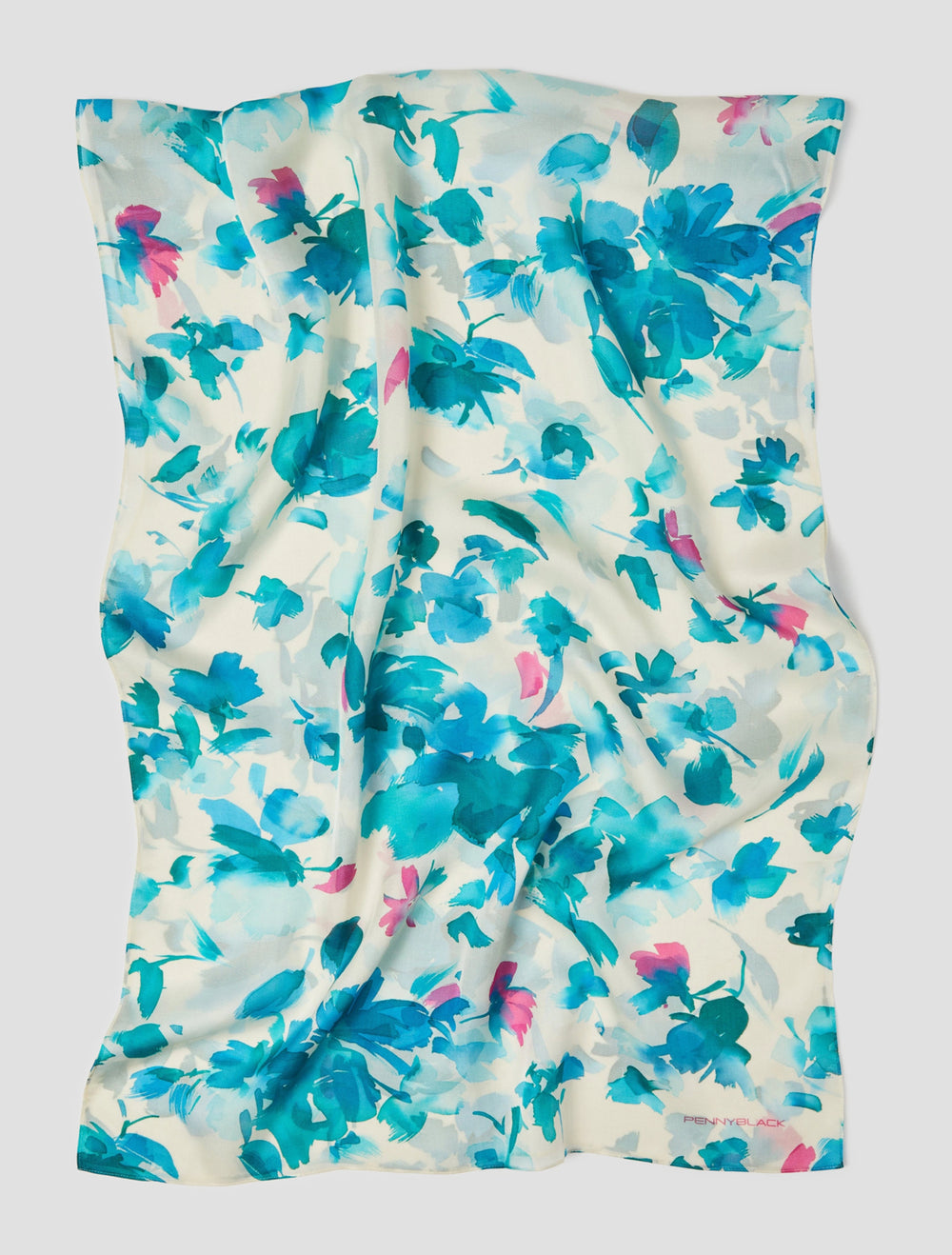 Stole in jacquard-knit shiny and matte pure silk fabric. Available in plain colours or with collection-patterned prints. Size: 180 x 67 cm.