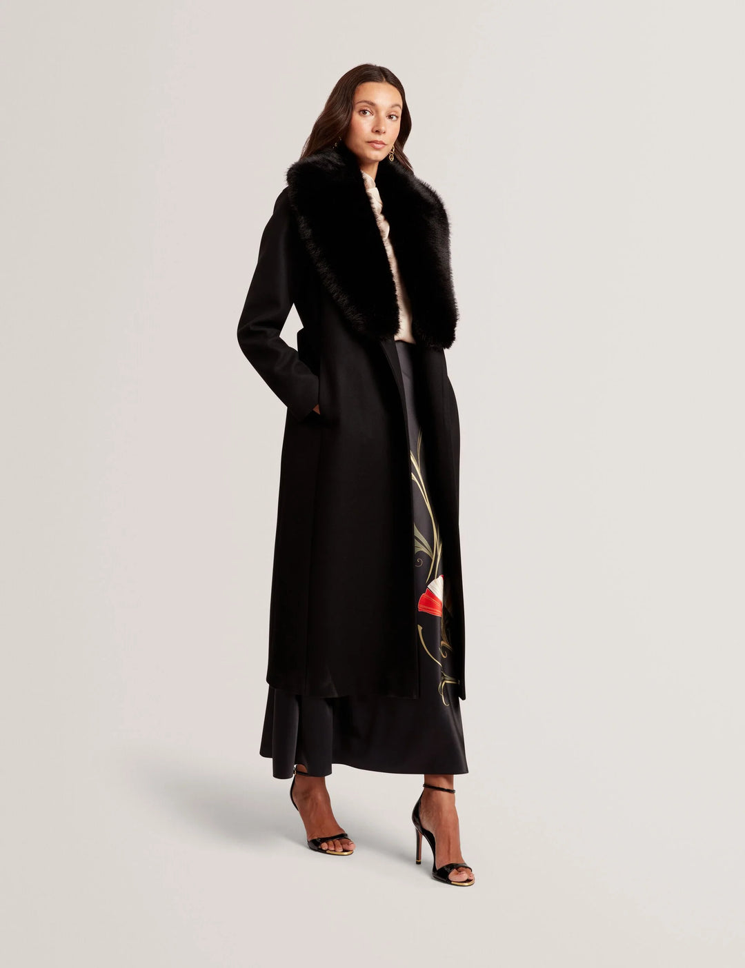 Ted Baker Musea Faux Fur Belted Long Coat | Black