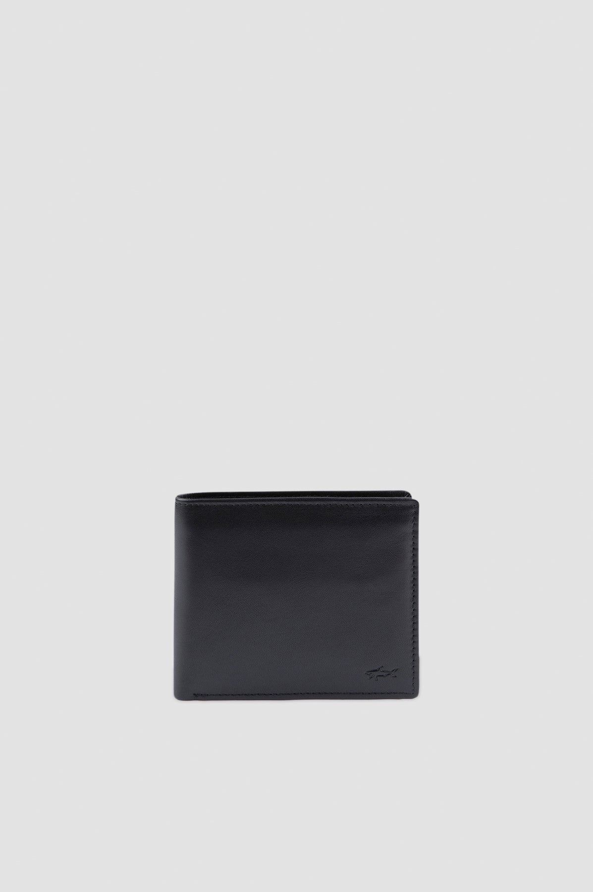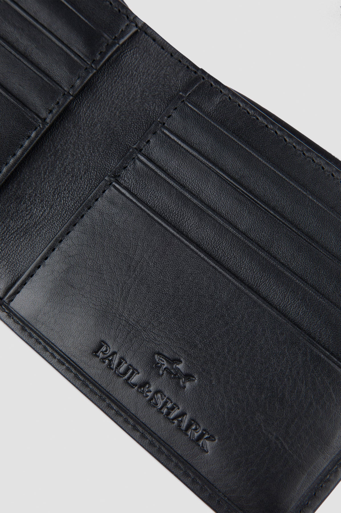 Black wallet made of soft fine-grain leather by PAUL&SHARK. - Swing bifold model with compartments for banknotes, slots for business cards and cards, embossed brand logo inside and on the front panel.