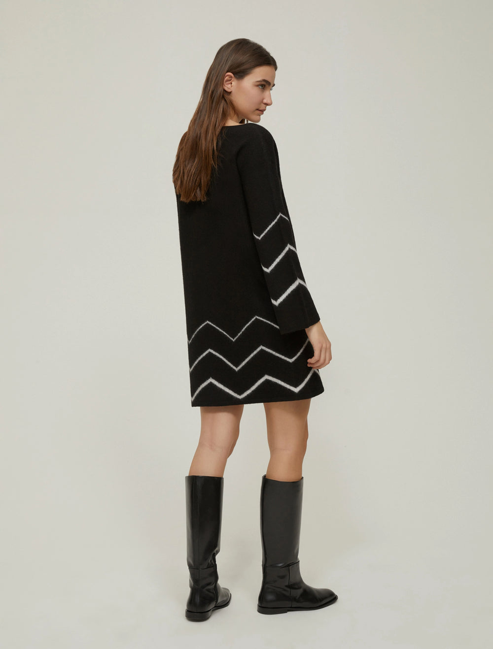 This comfortable yet stylish dress in boiled wool knit fabric boasts a clean-cut design, punctuated by graphic details.