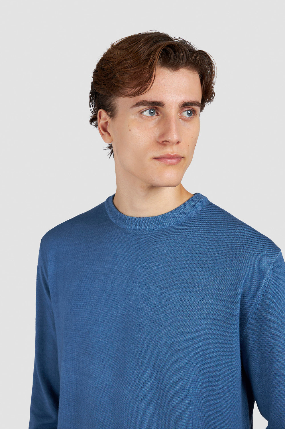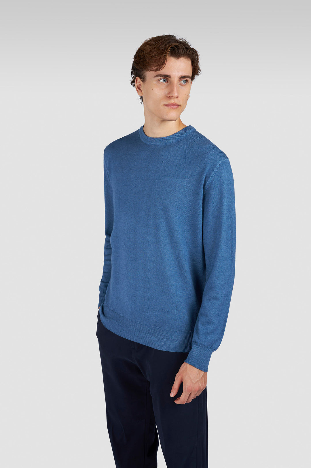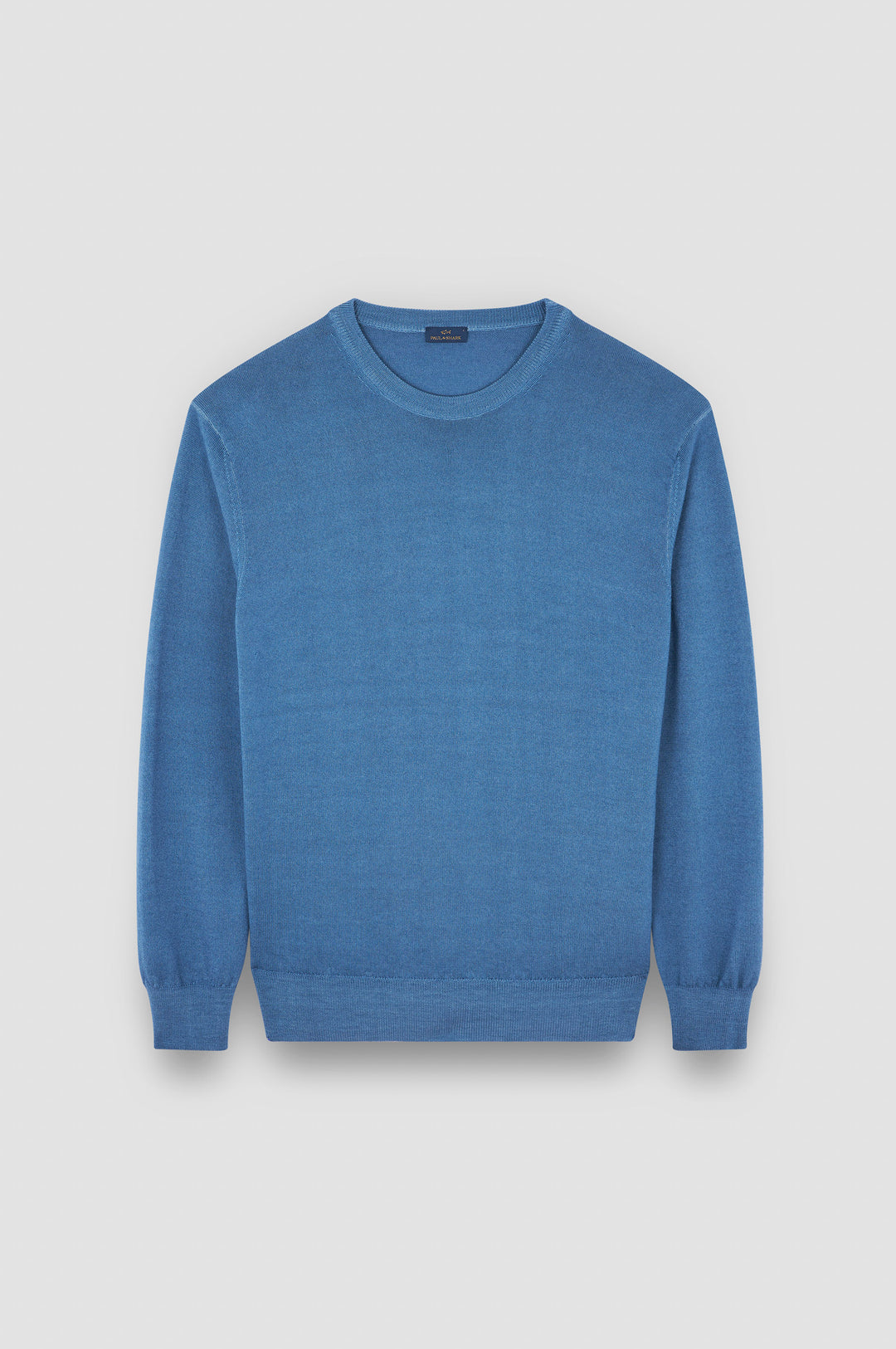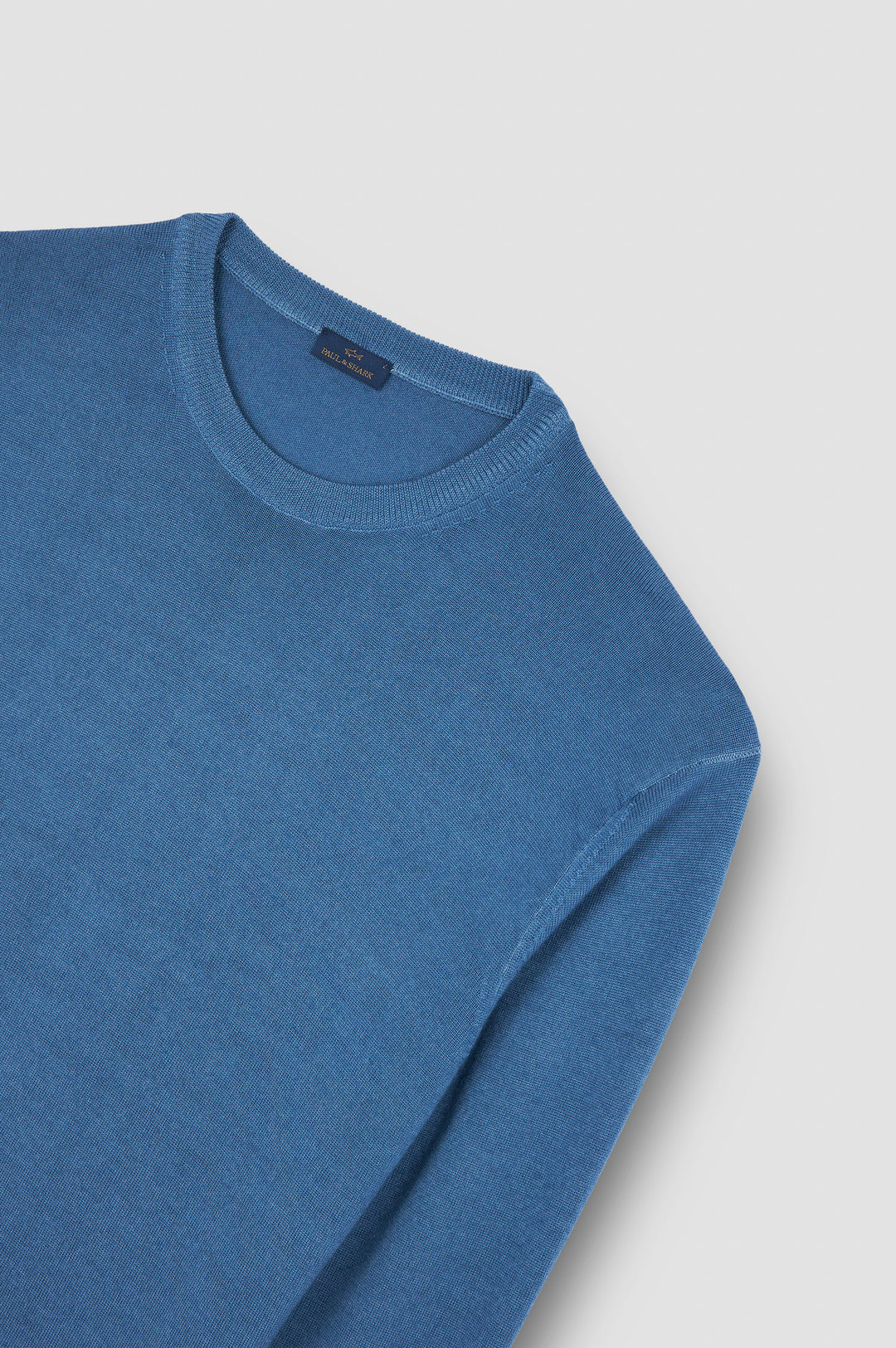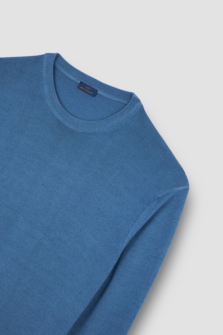 Paul & Shark Moon Badge Garment Dyed Wool Crewneck | Light Blue