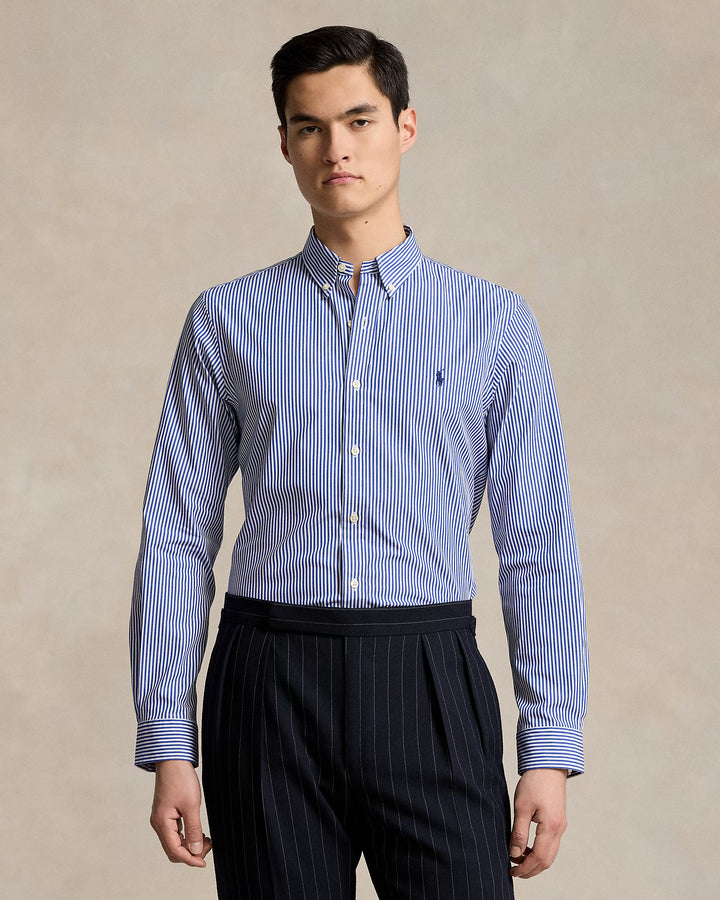 Ralph Lauren Custom Fit Stretch Poplin Shirt | Blue Bengal