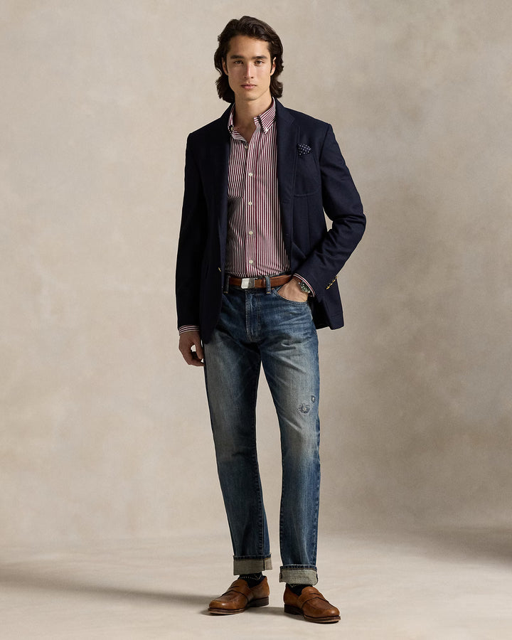 Custom Fit: a trim silhouette in between our Classic Fit and Slim Fit. Tailored through the waist.