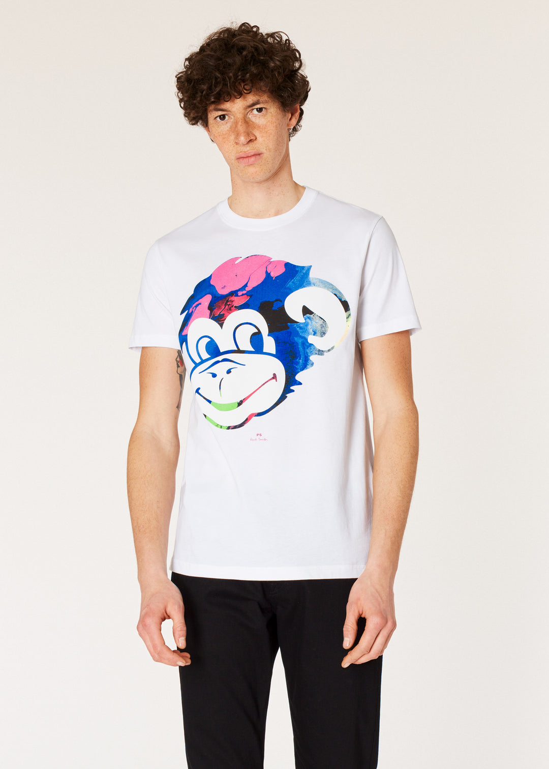 Made from soft cotton jersey, this white crew neck t-shirt features a large 'Marble Monkey Head' print across the chest.