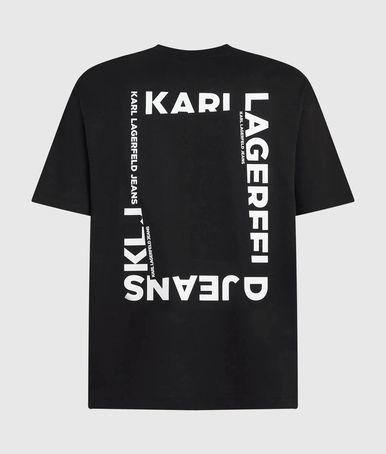 Bold frame-effect logo artwork at the back