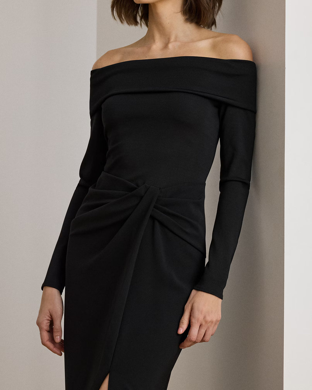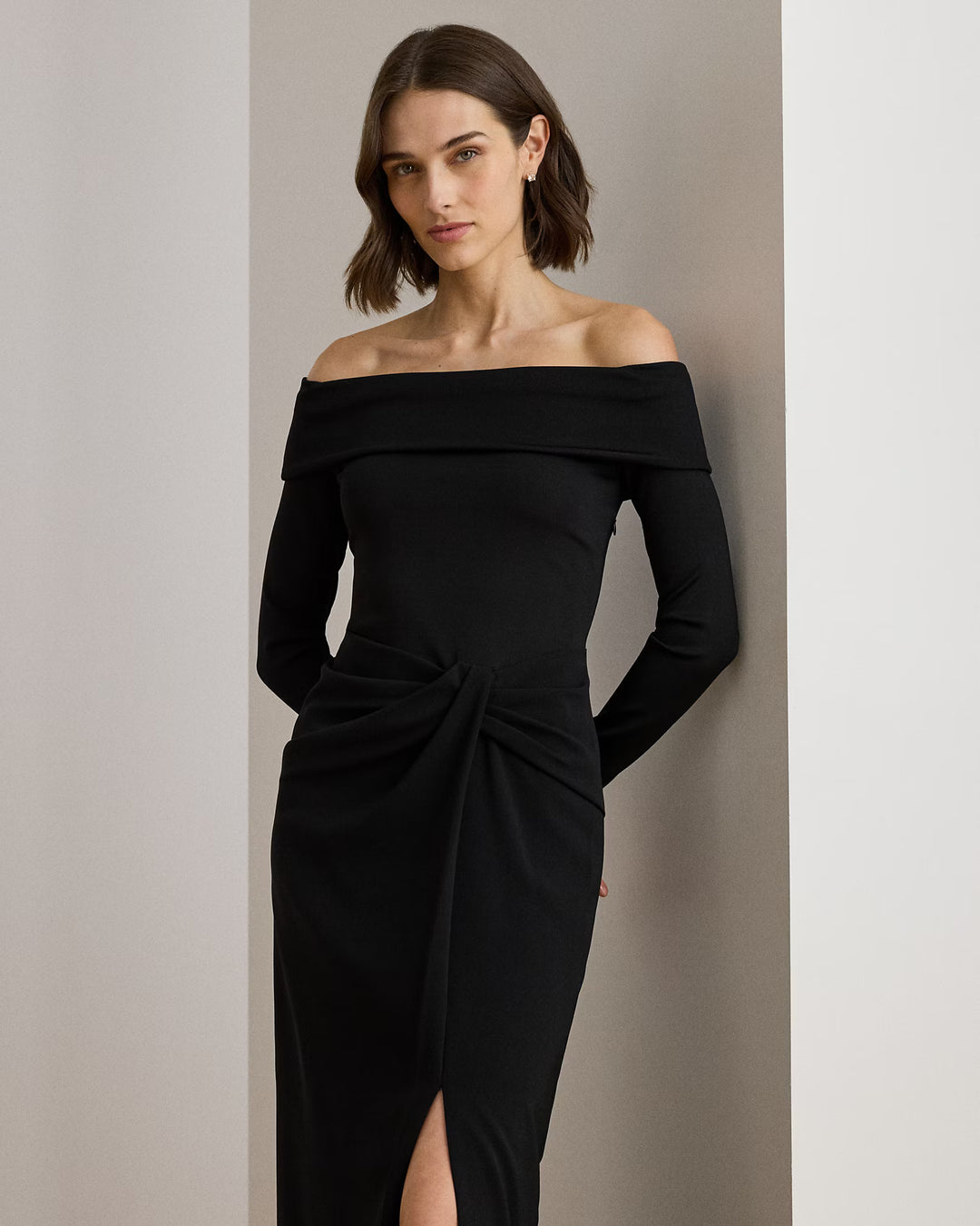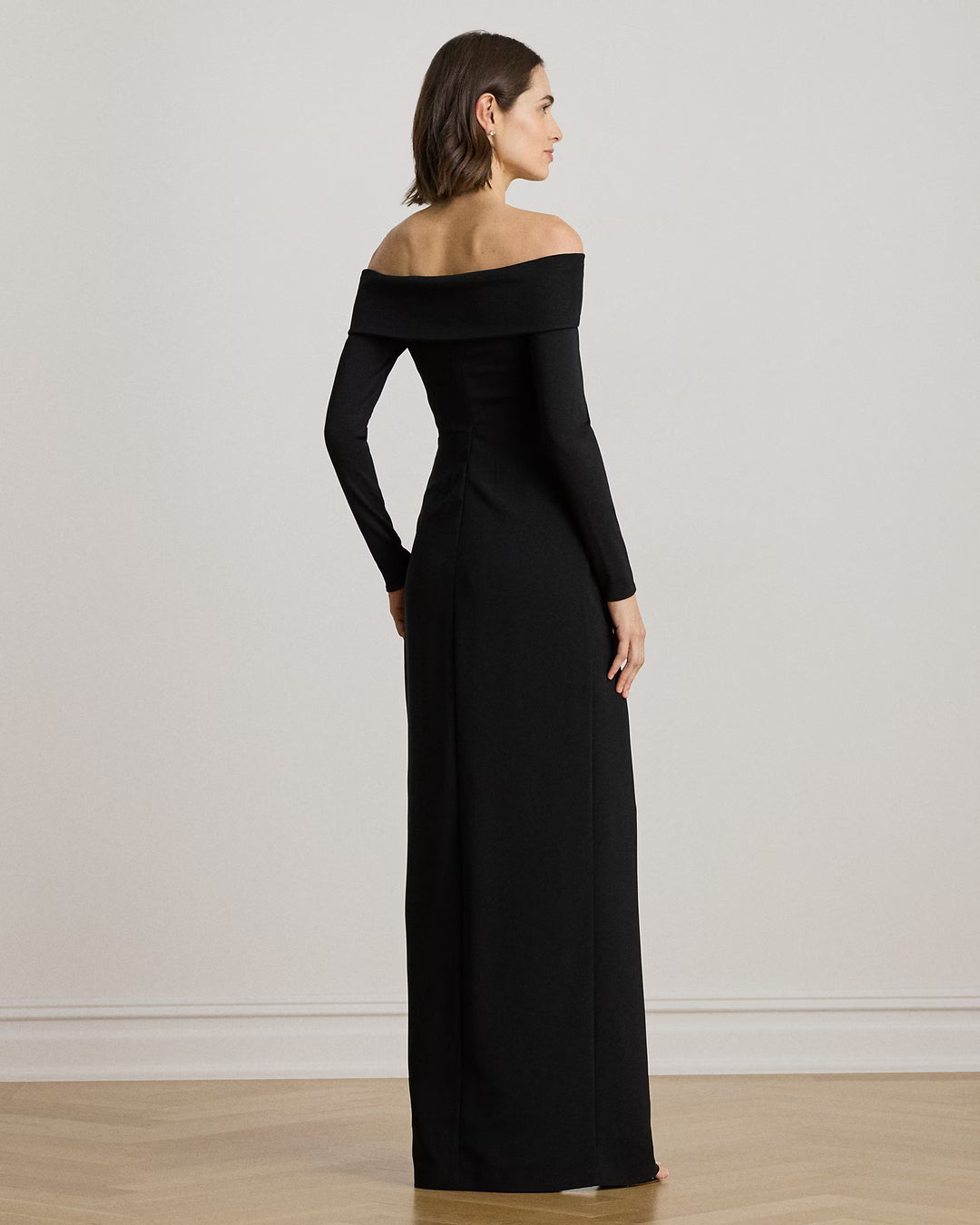 Lauren Ralph Lauren Rib-Knit & Crepe Off-the-Shoulder Gown | Black