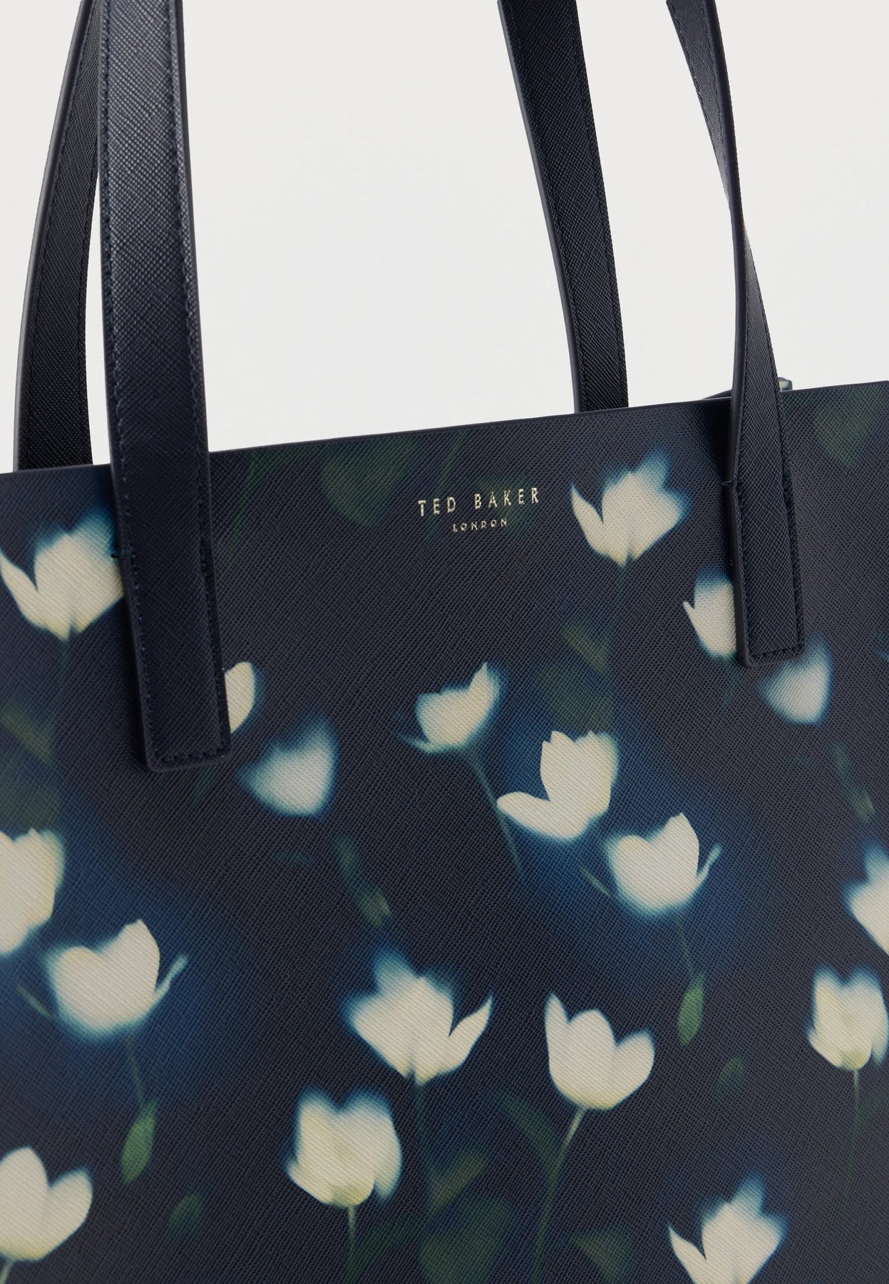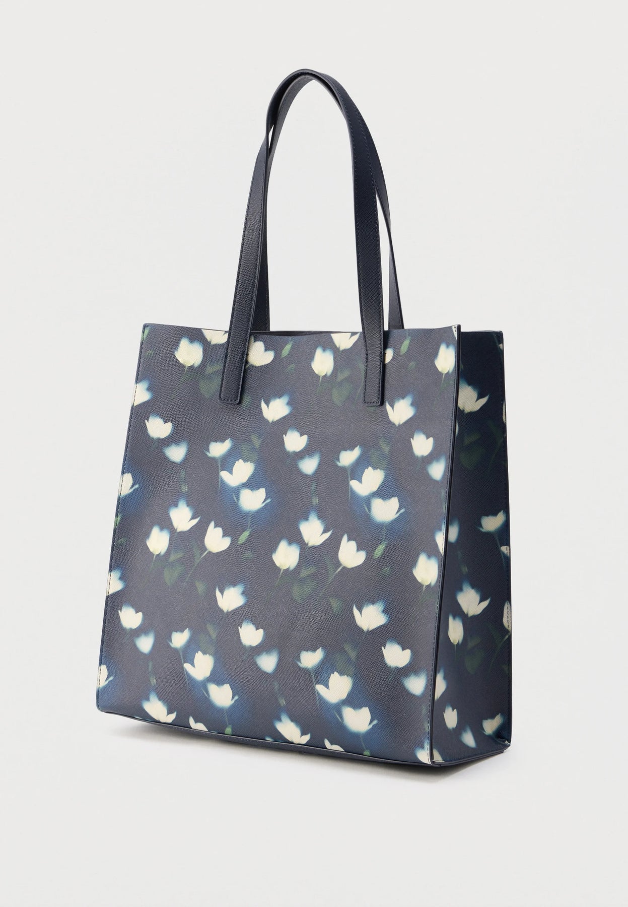 A large icon bag featuring a vibrant tulip print, combining style and functionality.