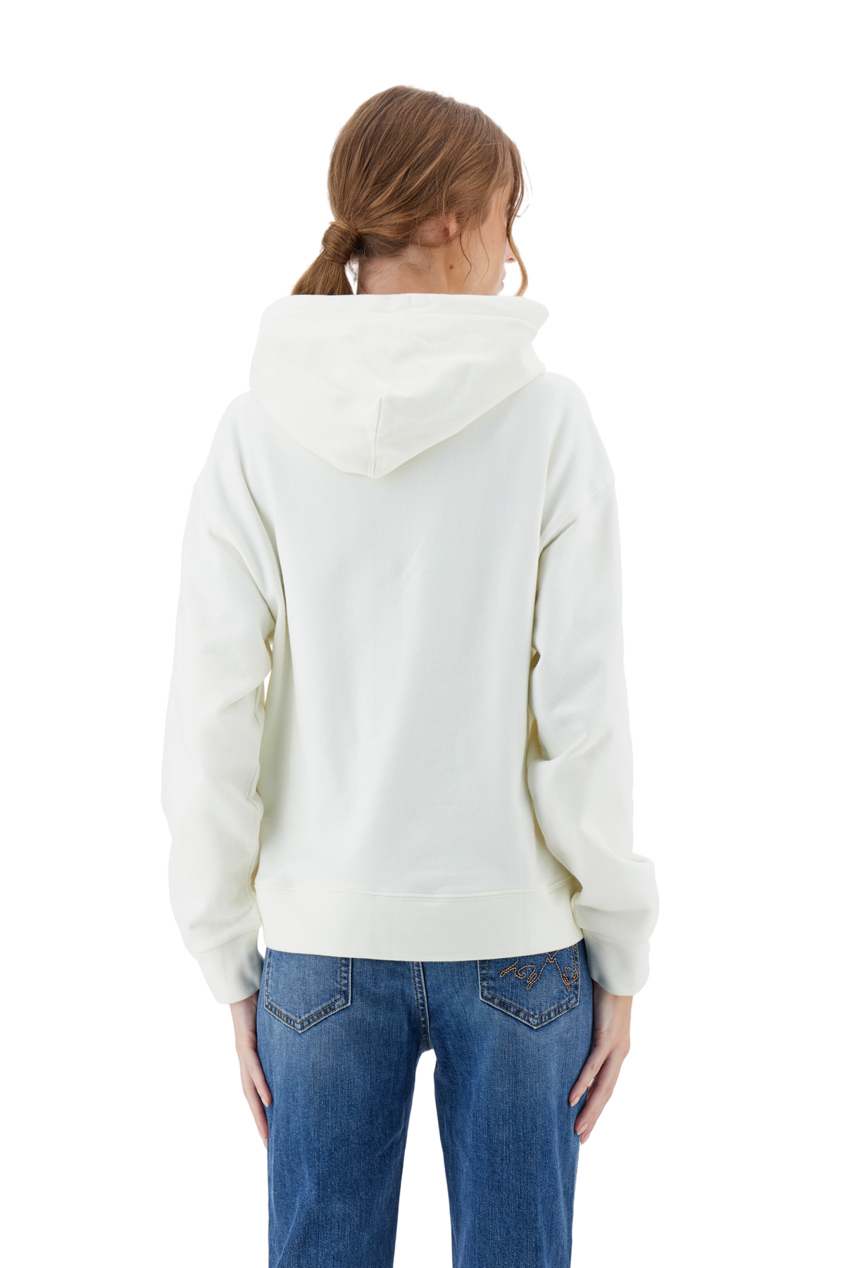 Women’s hoodie with long sleeves in 100% cotton french terry, solid colour with a velvety and warm touch. The hood is lined in tone-on-tone jersey and finished with a velvet drawstring. The chest graphic recalls the refined aesthetics of the Royal Polo theme, while the small brand logo is tone-on-tone embroidered on the sleeve. The model wears size L.