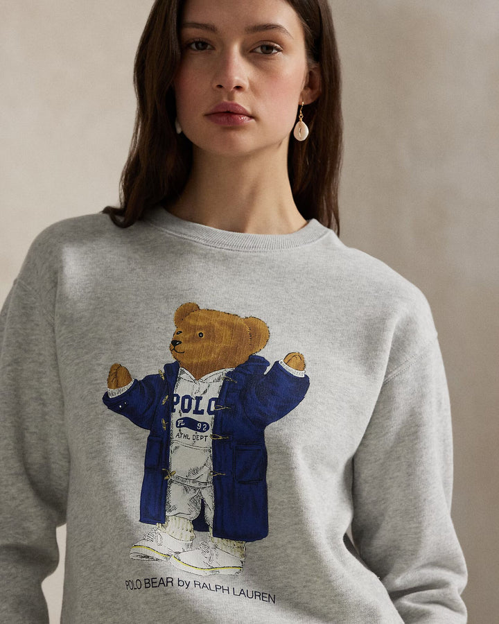 This fleece crewneck sweatshirt features a vintage-inspired version of the Polo Bear and a nod to the year 1992, when the first Polo Sport line was introduced.
