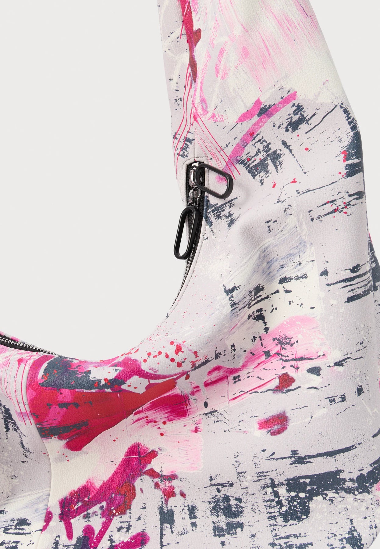 Celebrating the fearless world of artists, this contemporary slouchy hobo bag features a bold and playful painter's print. A statement handle and zip closure offer enhanced functionality.