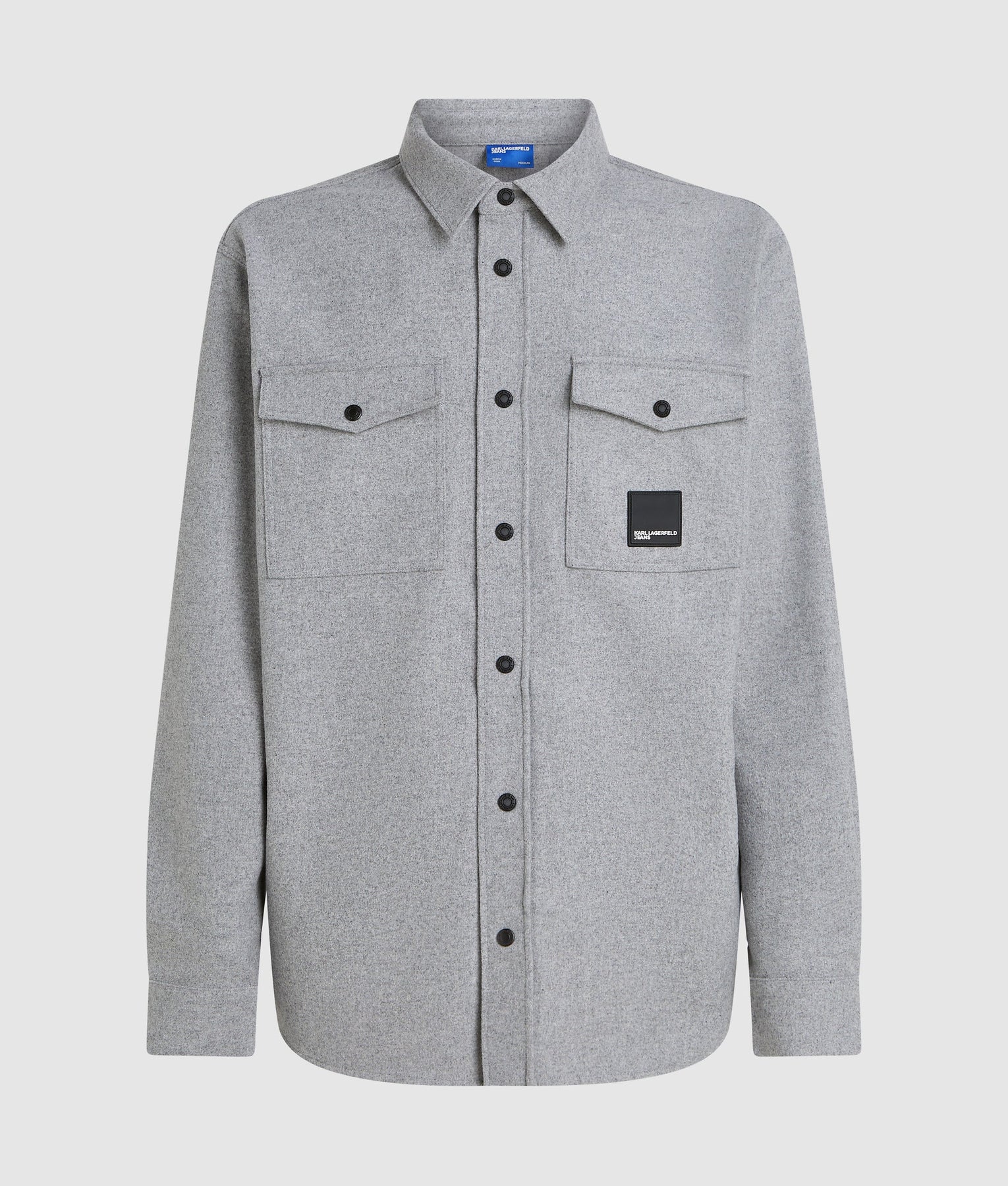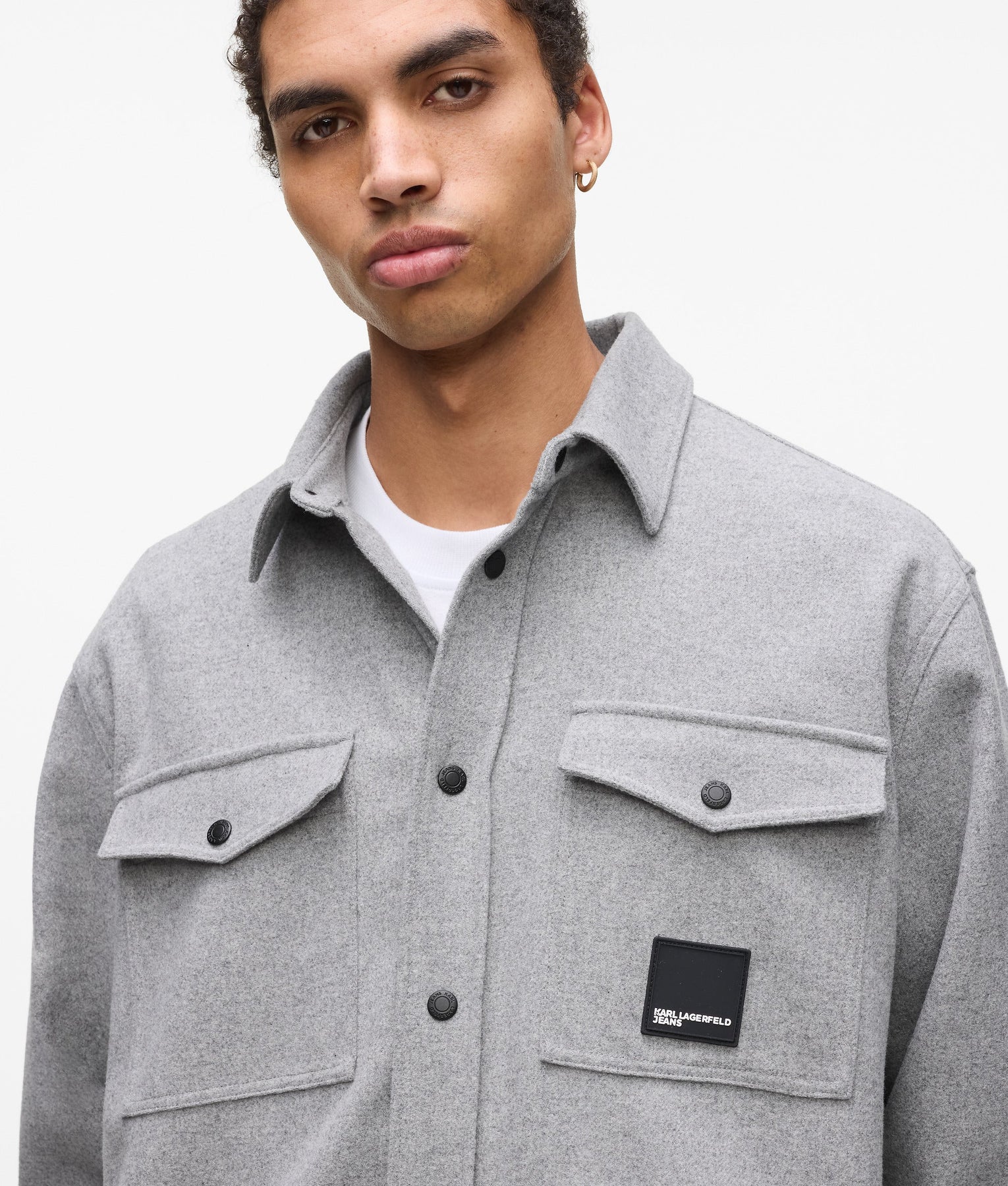 Made from a soft wool-blend, this relaxed-fit overshirt with contrasting snap buttons and standout logo patch brings a confident edge to layered looks.