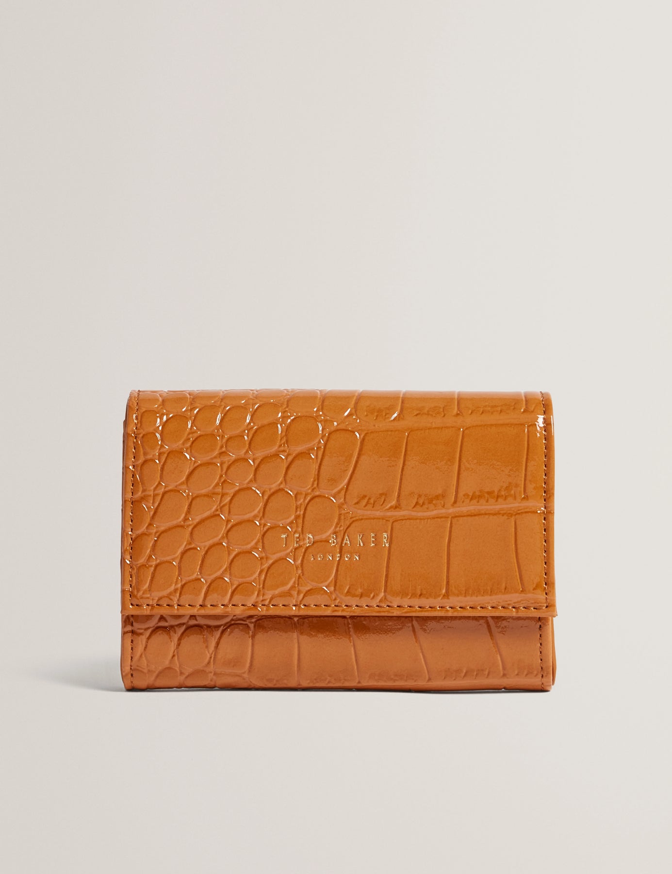 Ted Baker Patent Croc Texture Fold-Over Coin Purse | Tan