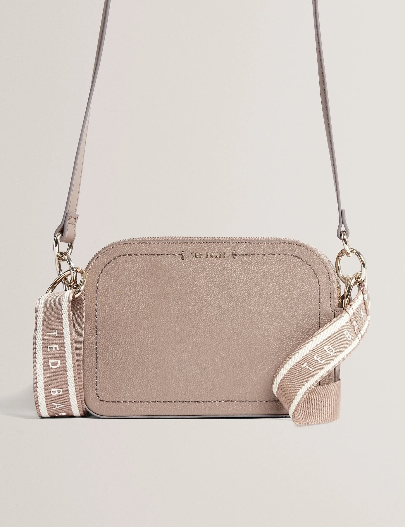 Sleek meets sporty with the LOUIIZE crossbody satchel bag. Designed in a modern baguette silhouette, this luxe leather accessory will take you anywhere with its interchangeable branded webbing and smooth leather straps.